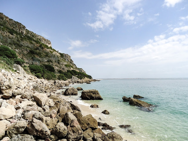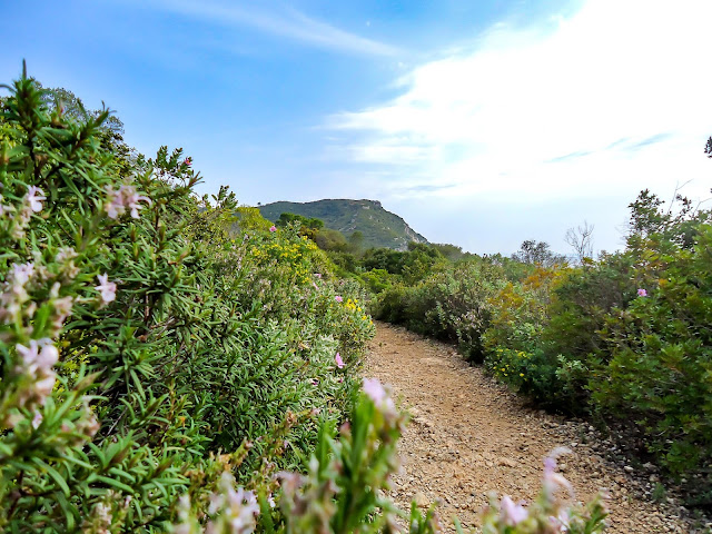 Nomeei o percurso de O Caminhos das Pedras e Flores, não que não os tenha encontrado nos outros caminhos, mas nesse estiveram mais presente. O início da primavera trouxe muito mais flores e consequentemente cores às trilhas. As pedra, fora as vulgares, tiveram representação na pedreira, nos trechos de asfalto e nas praias de rochas pelas quais passei saltitando de pedra em pedra, com alguma destreza, tenho que admitir. E à entrada de Setúbal passei ladeando uma fábrica de cimento, e hão de concordar comigo que cimento e pedra tem uma forte ligação.